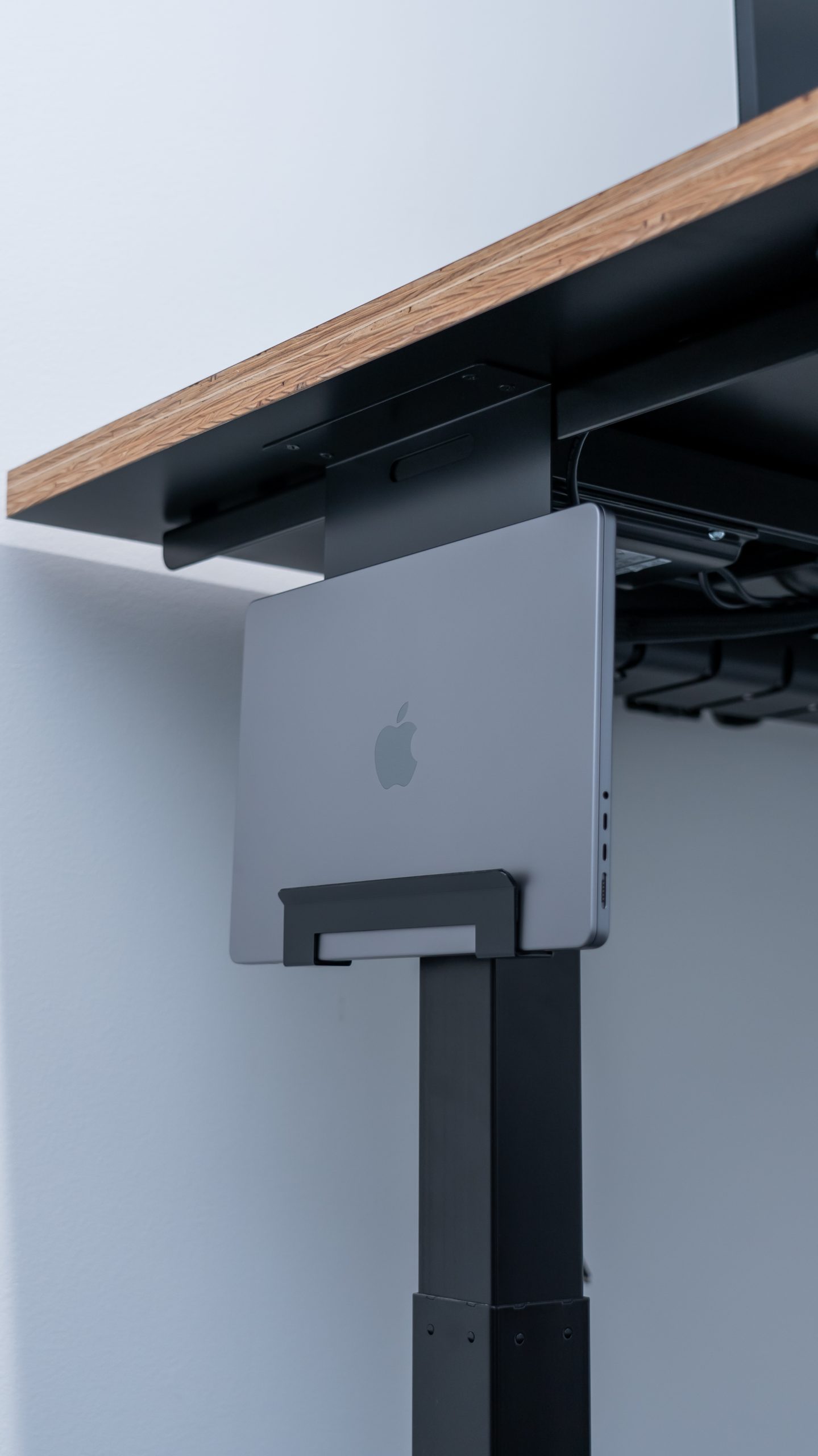 MacBookをデスク上に置きたくない。快適に収納取り出しができて、MacBookの吸排気を妨げないPCスタンドが欲しいということで開発したのが、僕のオリジナルブランドtechyouのDESK UNDER PC STAND。MacBookをデスク側面に収納したいという人にはおすすめです。