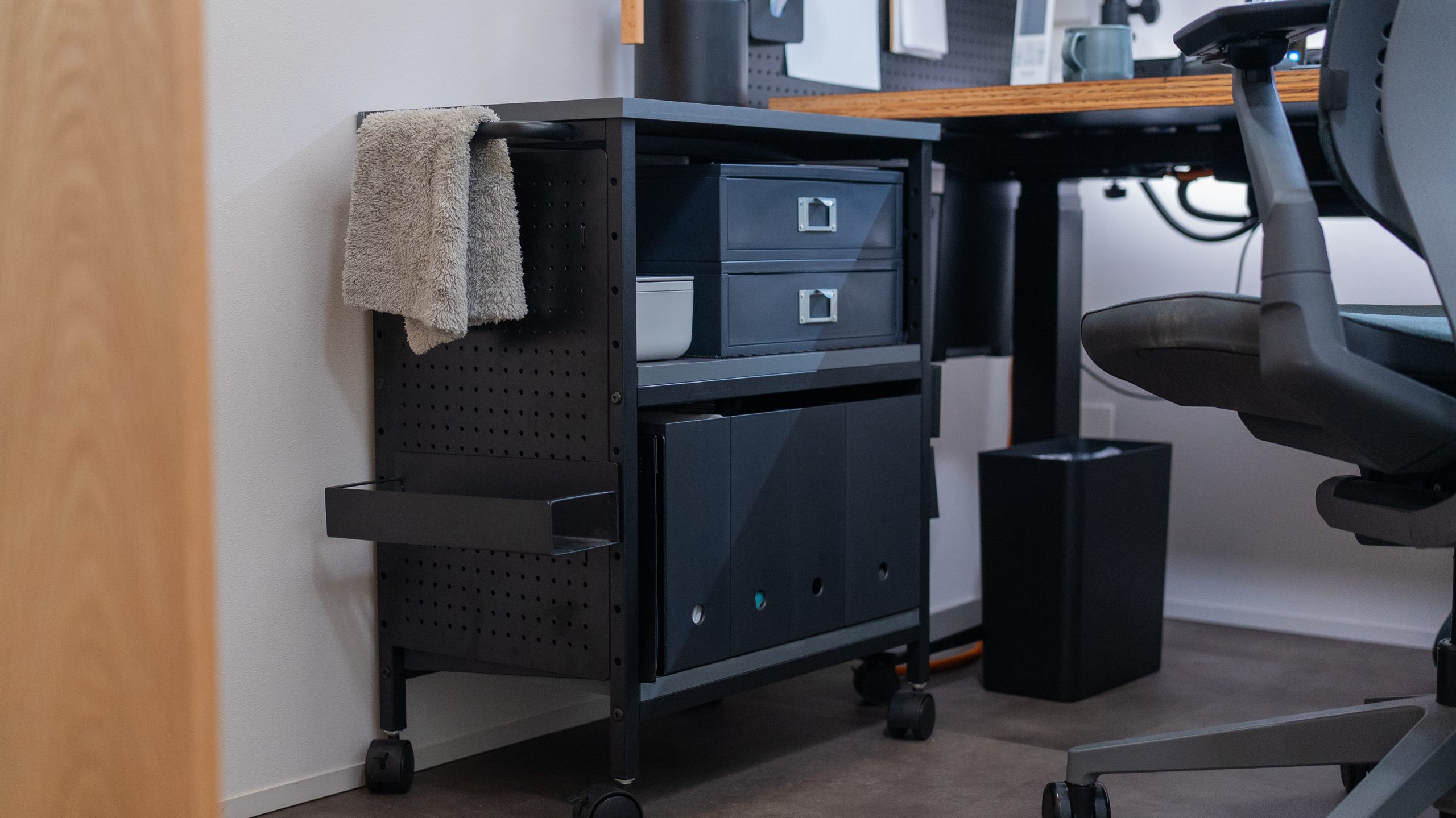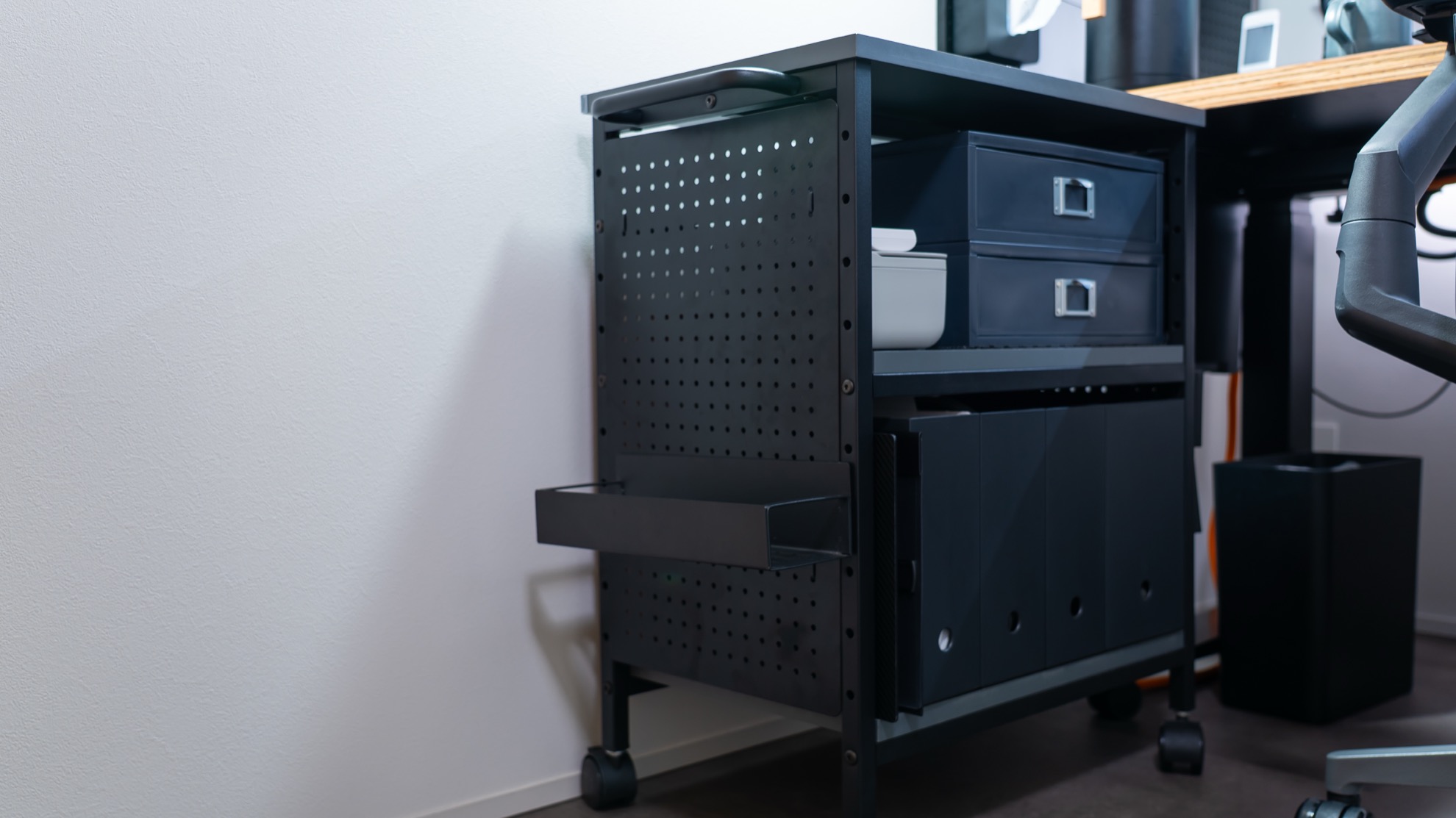 新居に引っ越して、サイドデスクを新調。山善のデスクサイドワゴンを自分の部屋に合うようにカスタマイズしました。大きすぎず小さすぎずちょうど良いサイズ感が気に入っています。プリンタなども置くことも可能ですが、僕は主によく使う事もの類を収納するのに愛用。