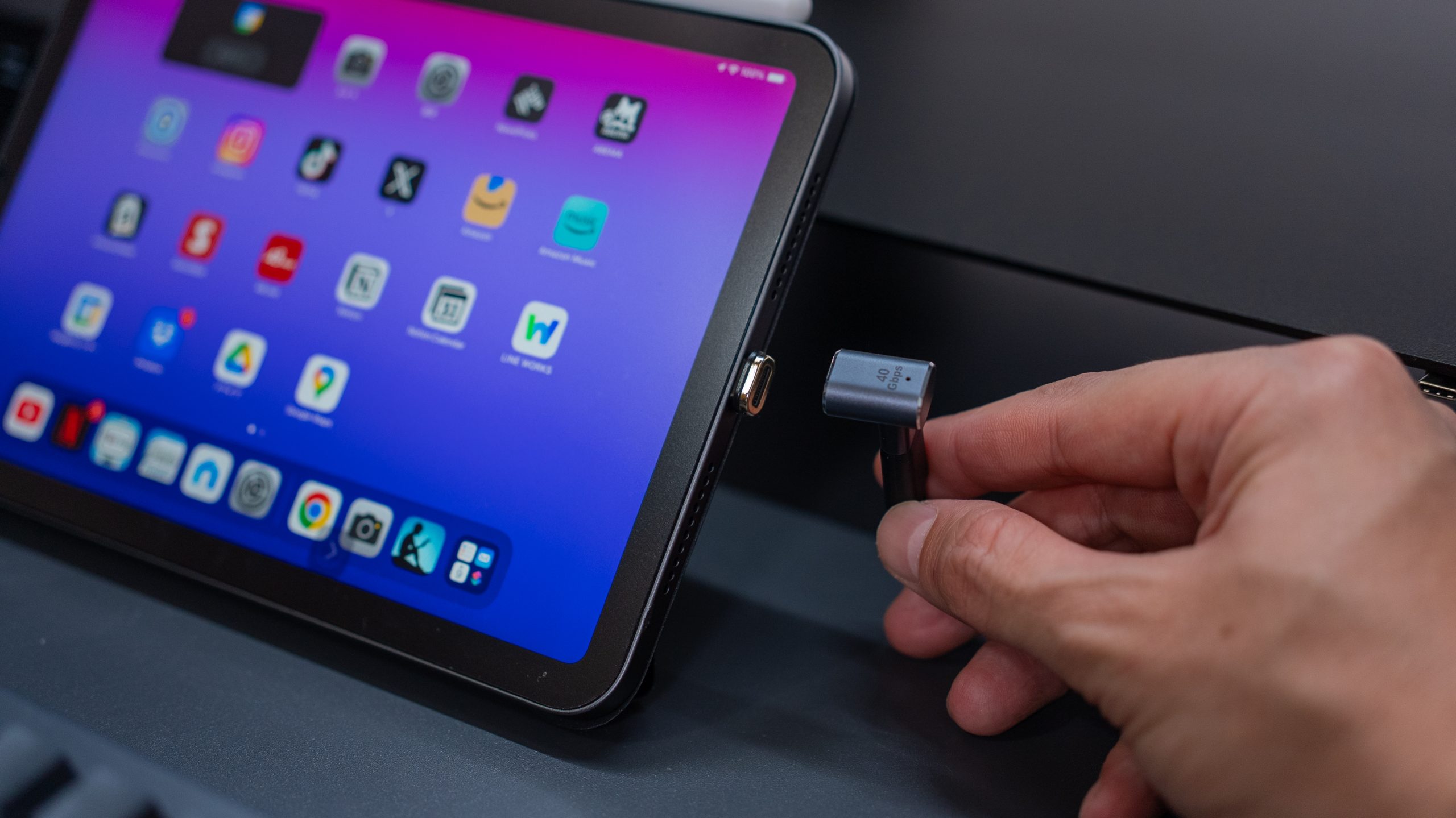 iPad miniの充電にはマグネットL型アダプタを採用。これをiPad miniにつけておくことでケーブルを挿す必要がなくなり、地味ですがとても快適です。
