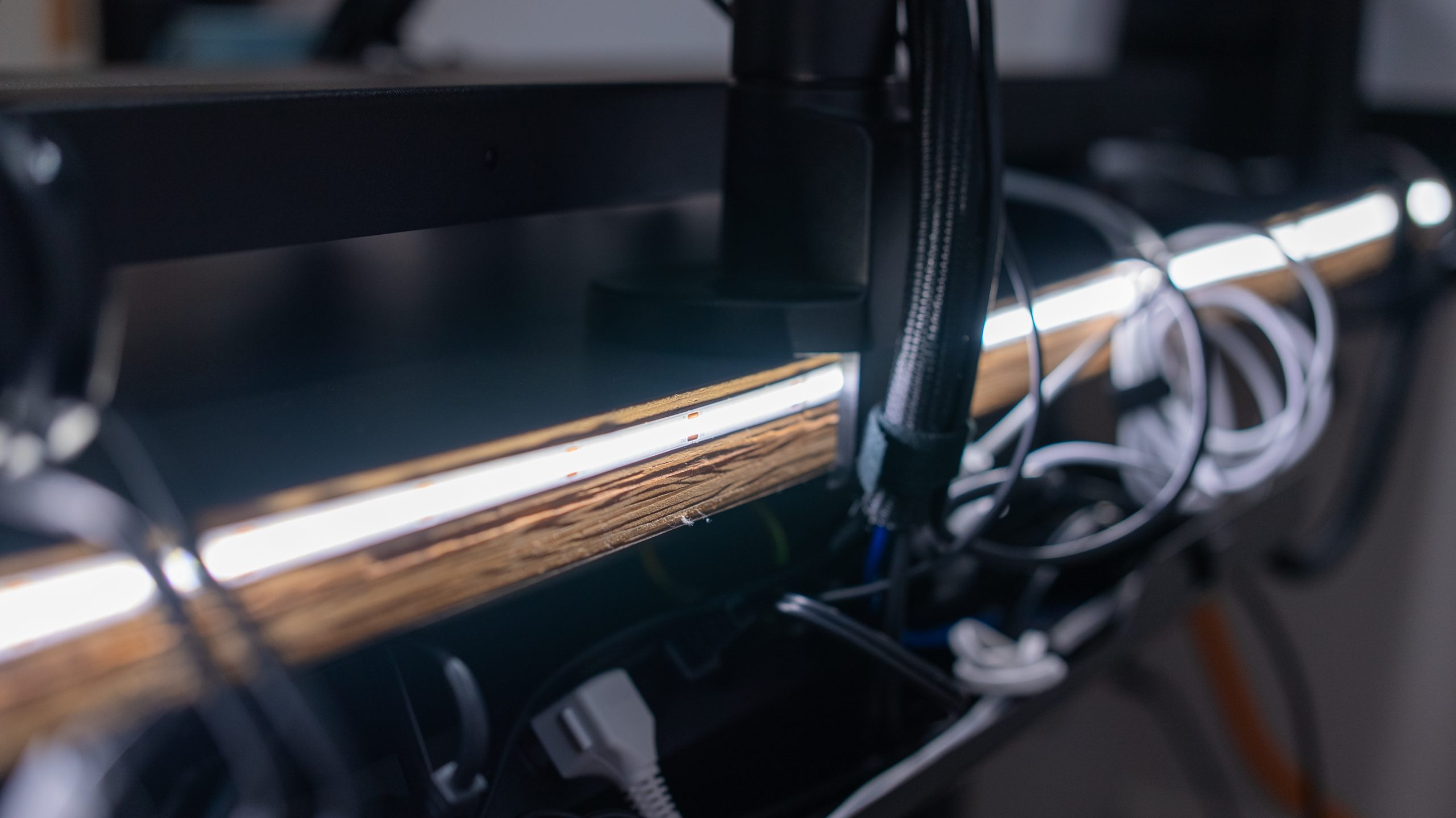 ちなみに、デスク横・天井に仕込んでいるテープライトは等間隔にLEDが配置されているものではなく、ラインのように綺麗に光るテープライトを購入しましたがとても良いです!これはSwitchBotのテープライトよりも良いと思いました!