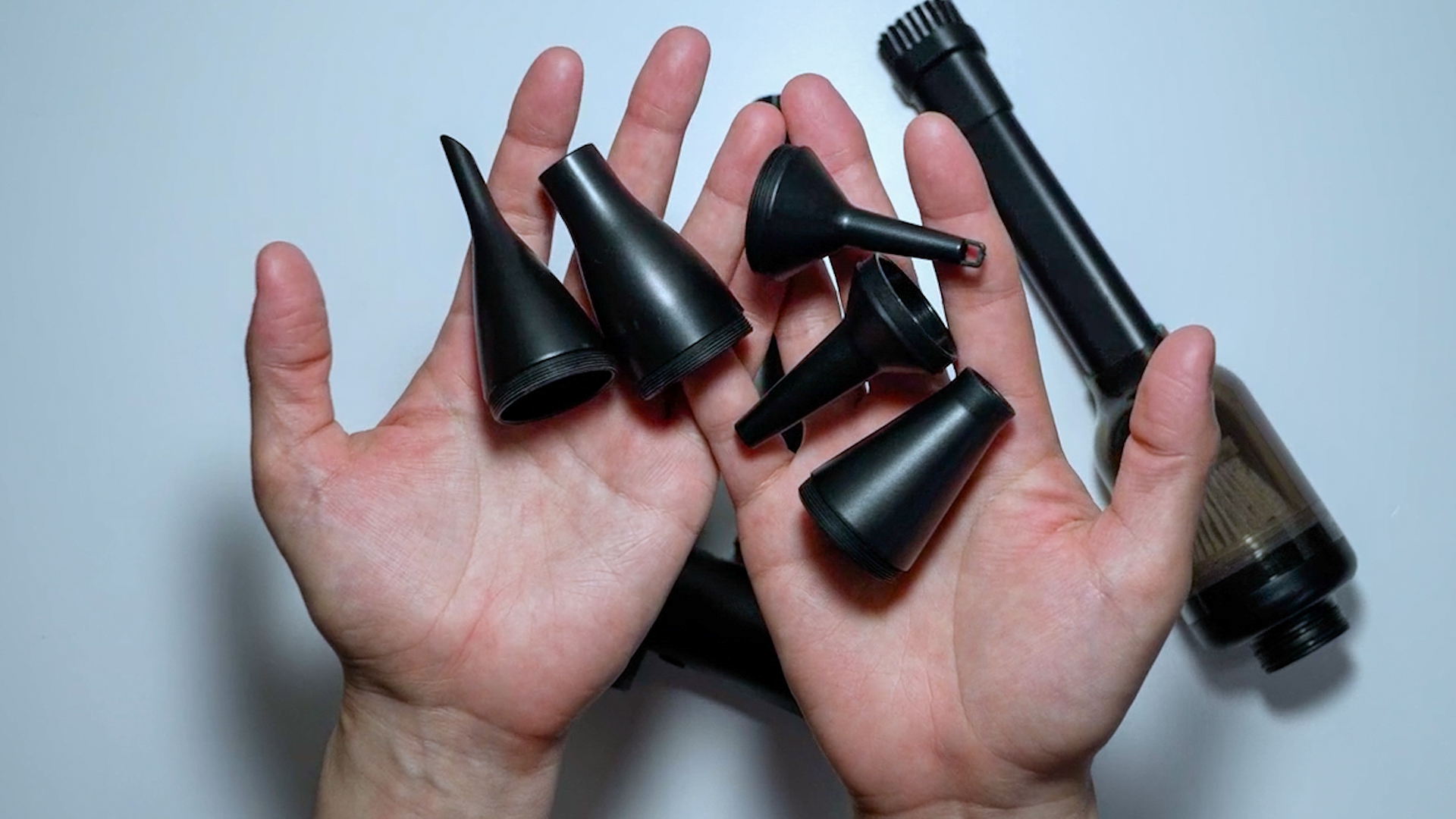 Ulanziのエアダスターの魅力は、風量が強いこと、色々な形状のアタッチメントが豊富で様々な使い方ができる点です。キーボード掃除はもちろんですが、掃除機アタッチメントもあり、ハンディミニ掃除機にも変化します。