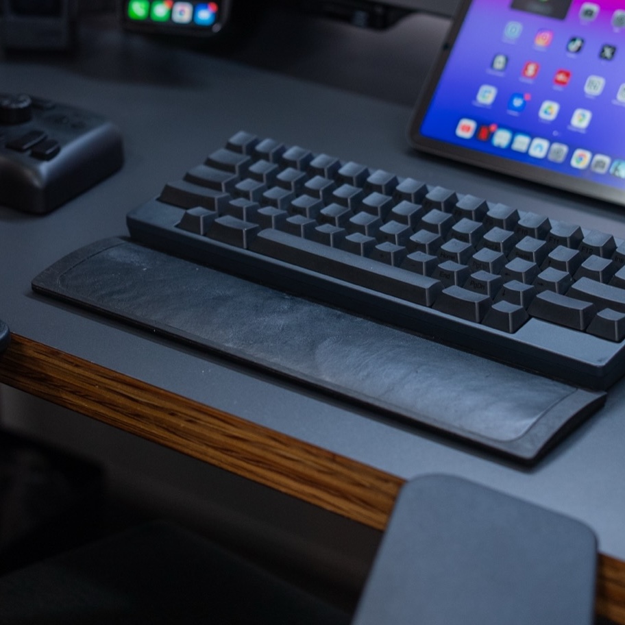 HHKBはそのままでは少々高さを感じます。なので、僕はGrovemadeのパームレストを愛用。レザーとウッドの組み合わせが最高にカッコ良い点とレザーの質感がよく、長時間のタイピングも快適です。ただ価格が高く、米国からの輸入商品という点はネックです。初回に使える10%OFFクーポンもあるのでGrobemade製品を購入したい方はぜひご利用ください。