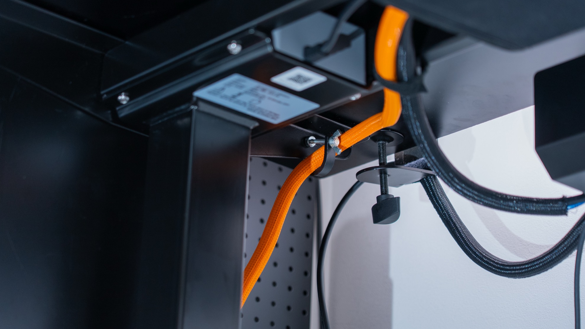 電動昇降デスクは、電源タップのケーブル1本がどうしても露出してしまいます。そのケーブルをフレームに固定するためにミニクランプを愛用。