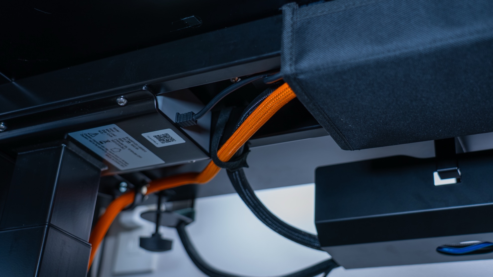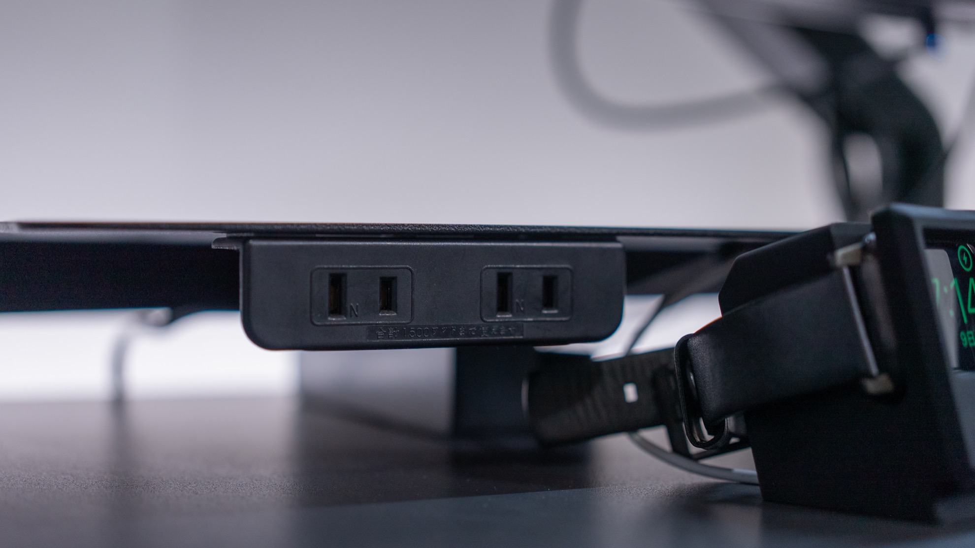 ちなみに、デスクシェルフ背面にはこのように設置。デスクシェルフ・デスク断面部分どちらにでも設置する事が可能です。