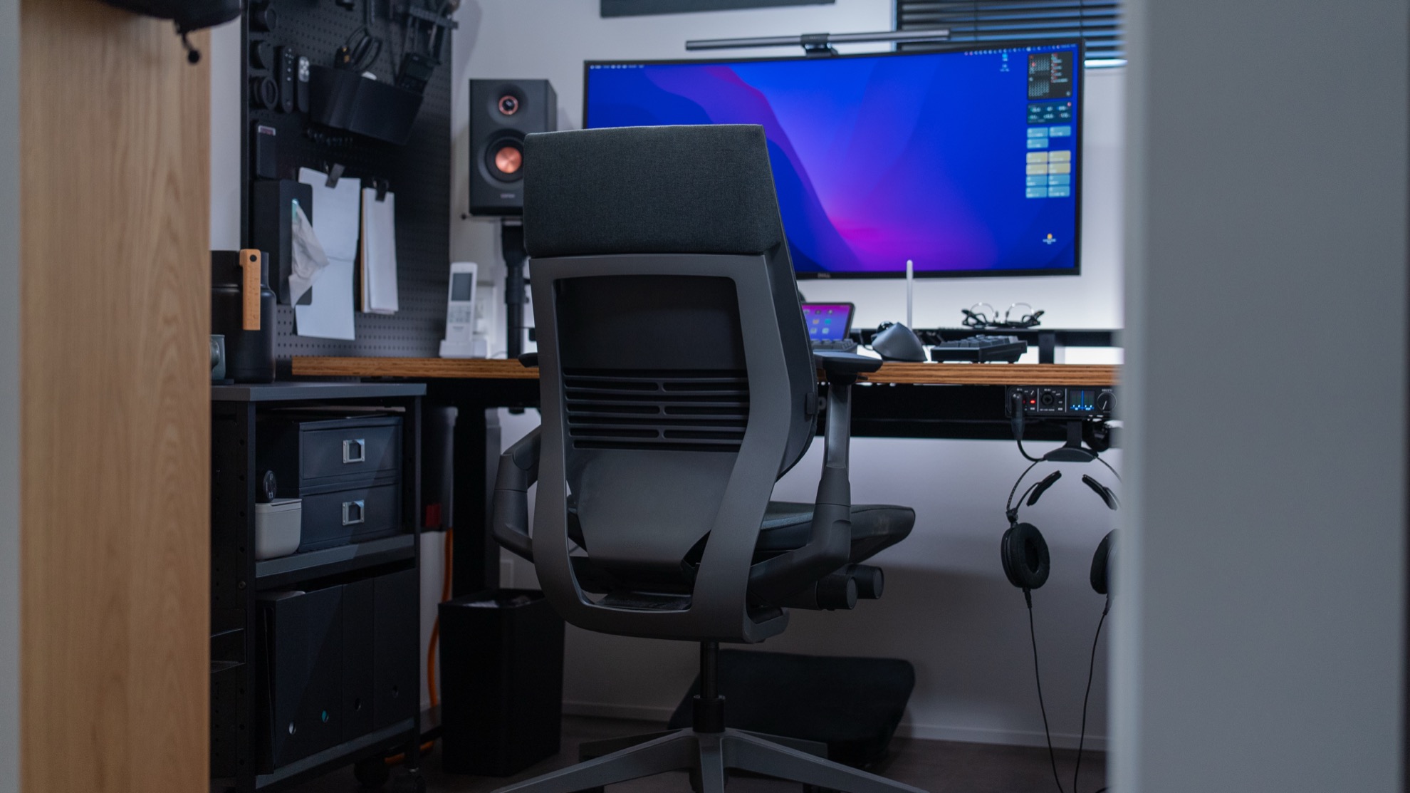 ファブリックの座面・背もたれ、腰を支えてくれるランバーサポート、座り心地は柔らかすぎず、程よい硬さのある感じでとてもお気に入りです。これまで色々なデスクチェアを使ってきましたが、椅子の上で上であぐらをかく事が多い僕にはファブリック座面が合っていると感じています。ヘッドレスト有無が選べますが、僕は無しのSteelcase Gestureを選択しました!