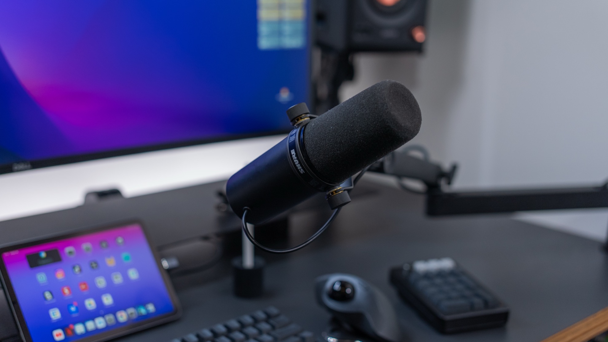 動画のナレーション・収録に使っているのがSHURE SM7Bです。価格は高いですが、一度購入すれば長く使えるのでおすすめです。また、ダイナミックマイクで、環境音を拾いにくいという特性もあるので家族の生活音などがある中での自宅収録には適しています。