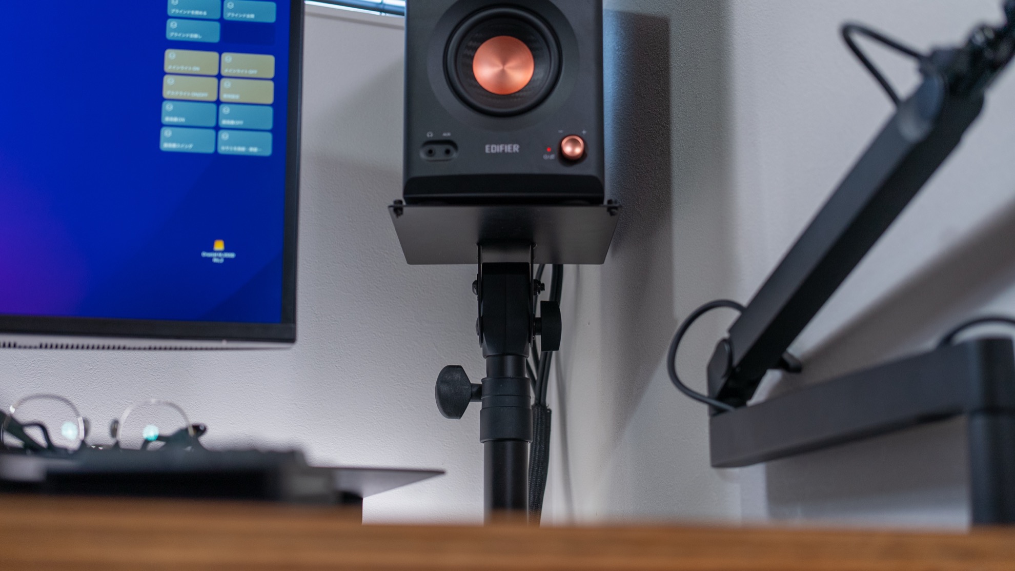 耐荷重10kg、パン・チルト方向、スピーカーの高さ調整が可能なクランプ式のスピーカースタンド。こちらも長年使っていますが非常におすすめ!