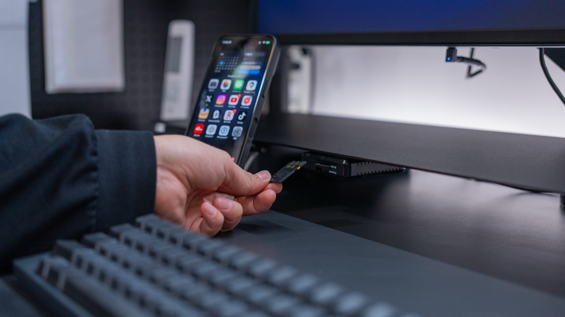 撮影した動画・写真データを取り込むためのProGrade Digital カードリーダーです。背面にはマグネットを搭載しており、techyouオリジナルデスクローシェルフに簡単に設置する事が可能。転送速度、設置性がとても良いです。