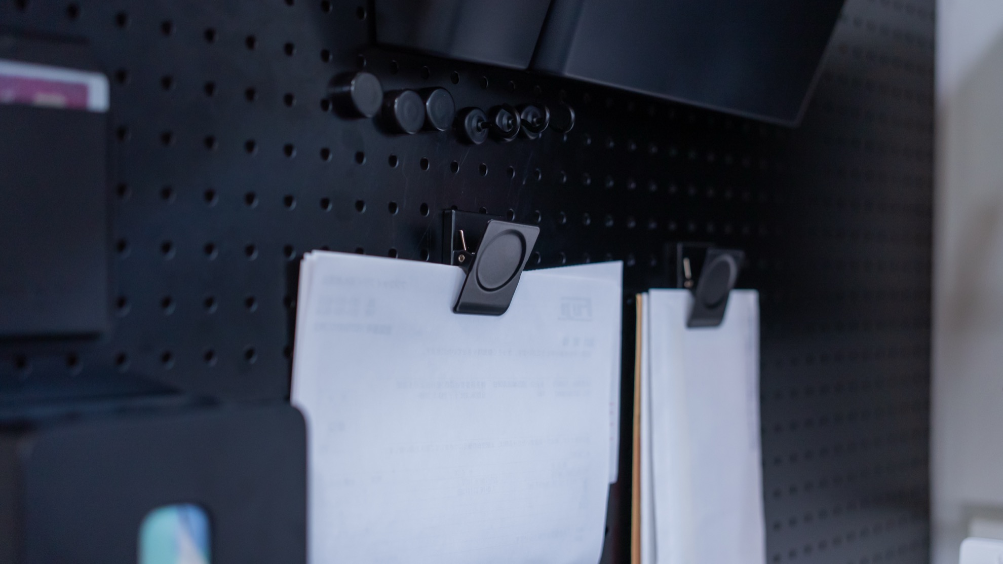 こちらはセリアで購入した100円のマグネットクリップ。支払う予定の請求書やすぐに使う書類などを挟めてすぐに使えるようにしています。僕の場合、請求書をしまって、そのまま支払いを忘れて期限が過ぎてしまったみたいなケースが多かったのでこの管理方法はとても良いです!