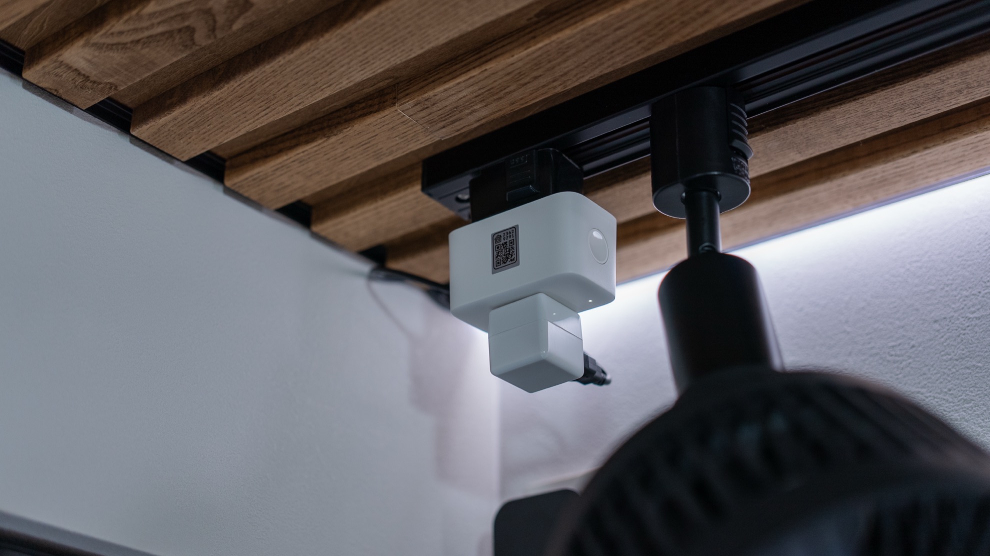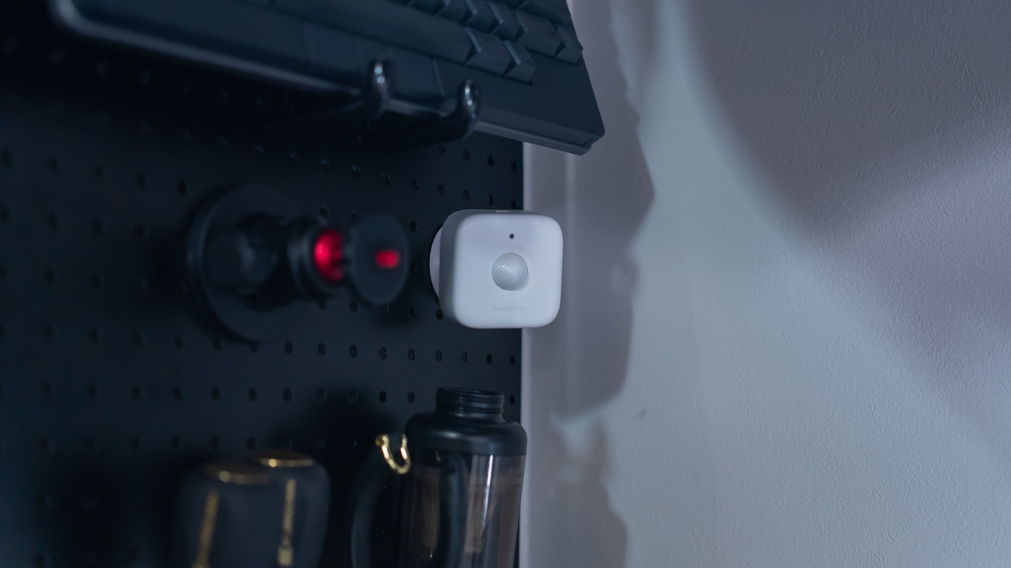 書斎に入室したことを感知するための人感センサー。人物を認識すると、デスクライトON、デスク側面・スリッド天井のテープライトの電源がONになります。退室30分以上で全て自動電源OFFになるように設定。なので、書斎でライトの電源ON/OFFする事がなくなりました!