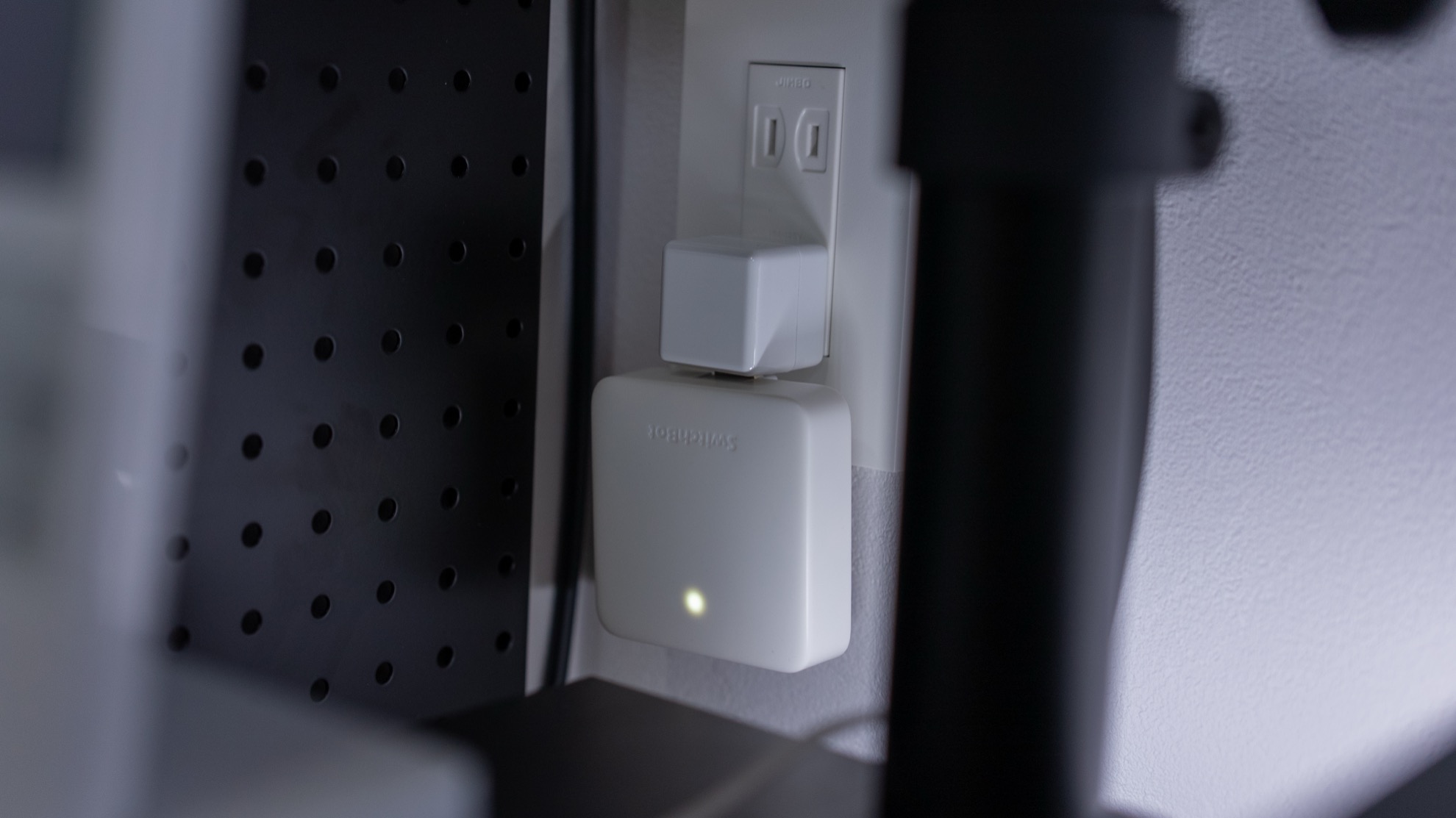 壁面にはスマートハブは、赤外線リモコンの機器をスマホやPCでコントロールするためのものです。これによって、PCでサーキュレーターの電源ON/OFFの切り替えも可能になります。