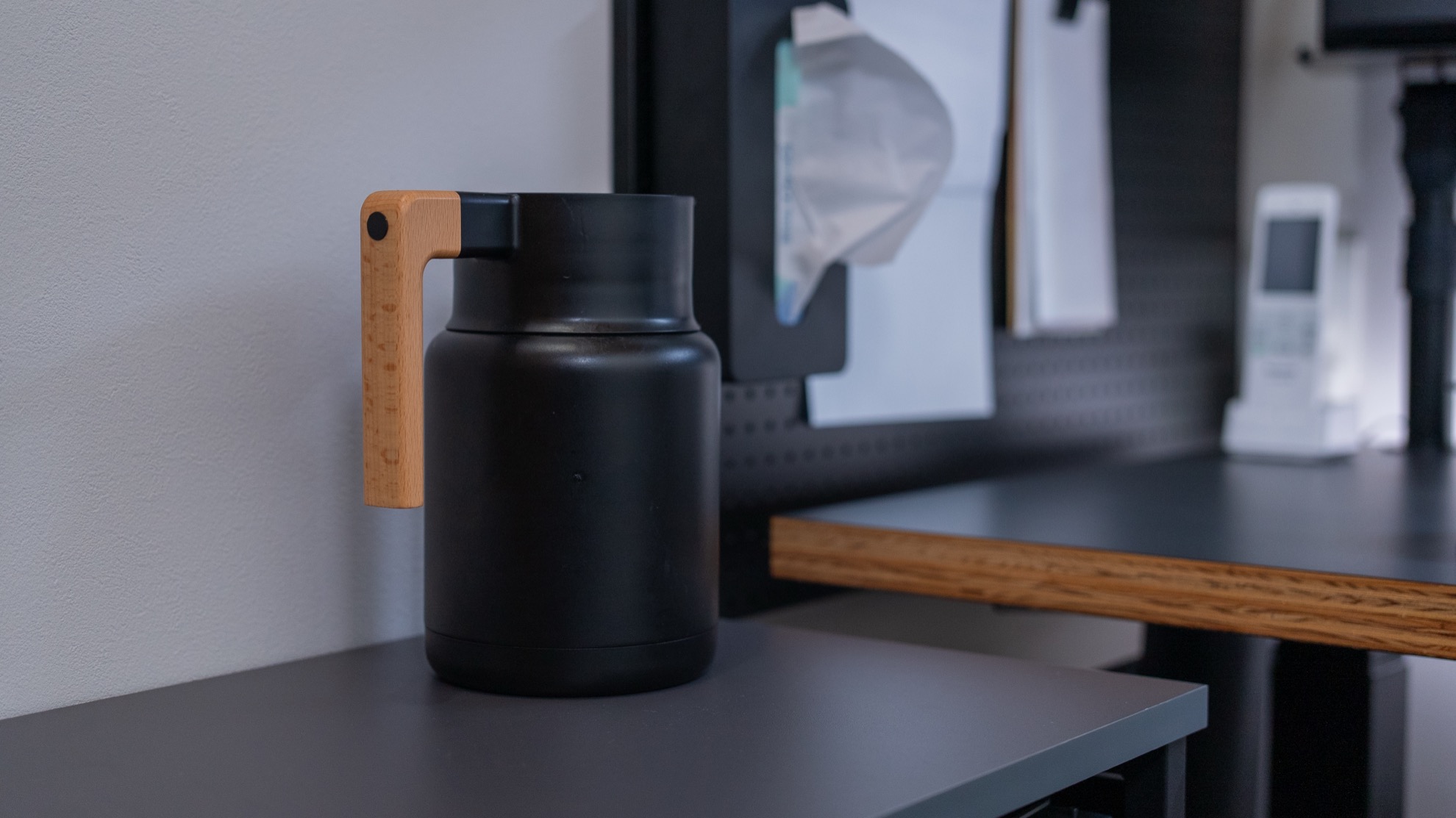 保冷ポットはサーモスのものから新調しました。ブラック基調かつ取手がウッドになっている点がお気に入りです。
