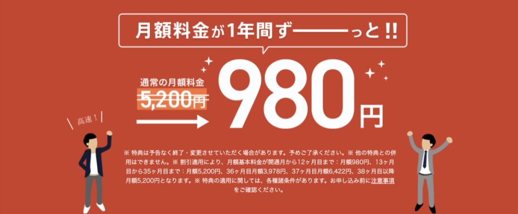 (利用料金より割引)初月利用料金 ▲5,200円 【特典3】引っ越し先の設定サポート1回無料
