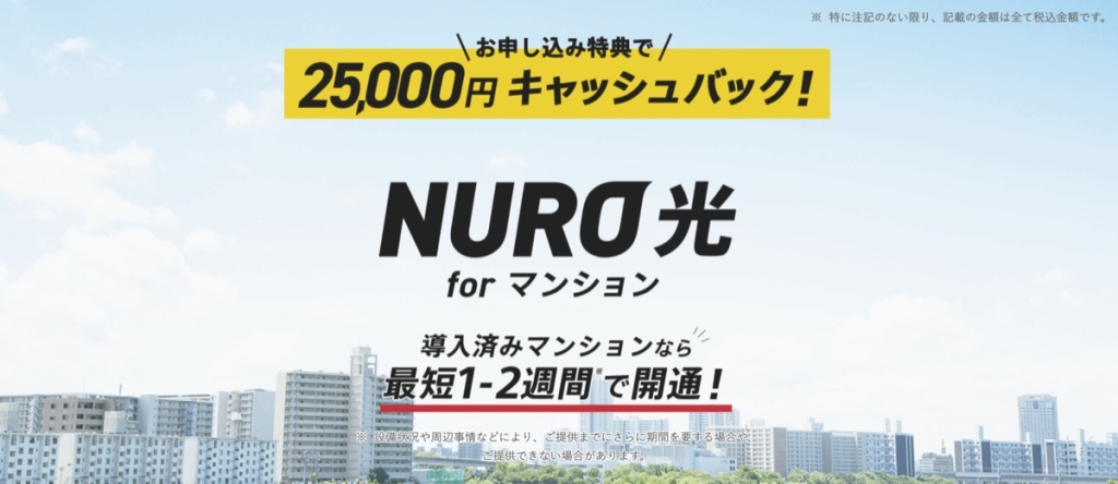 NURO光forマンションのキャンペーンは他にはないので「NURO光forマンション2.5万円キャッシュバック![]()