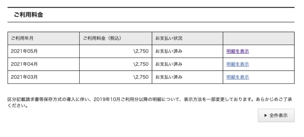 NURO光の月額料金は以下の「NURO光マイページ」より確認することができます。