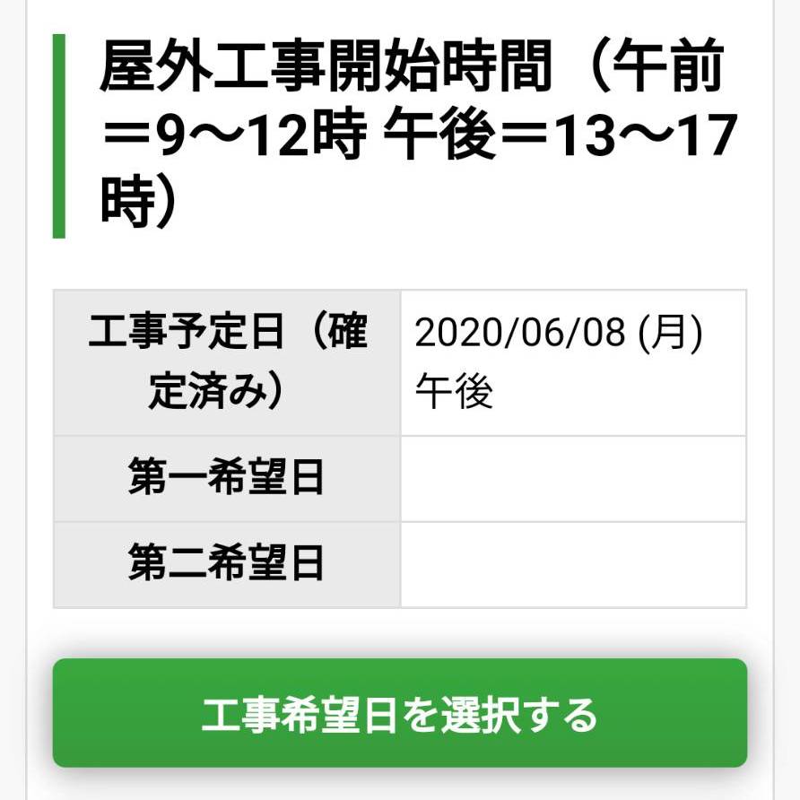 次に宅内工事が完了すると「屋外工事」の予約が可能になります。
