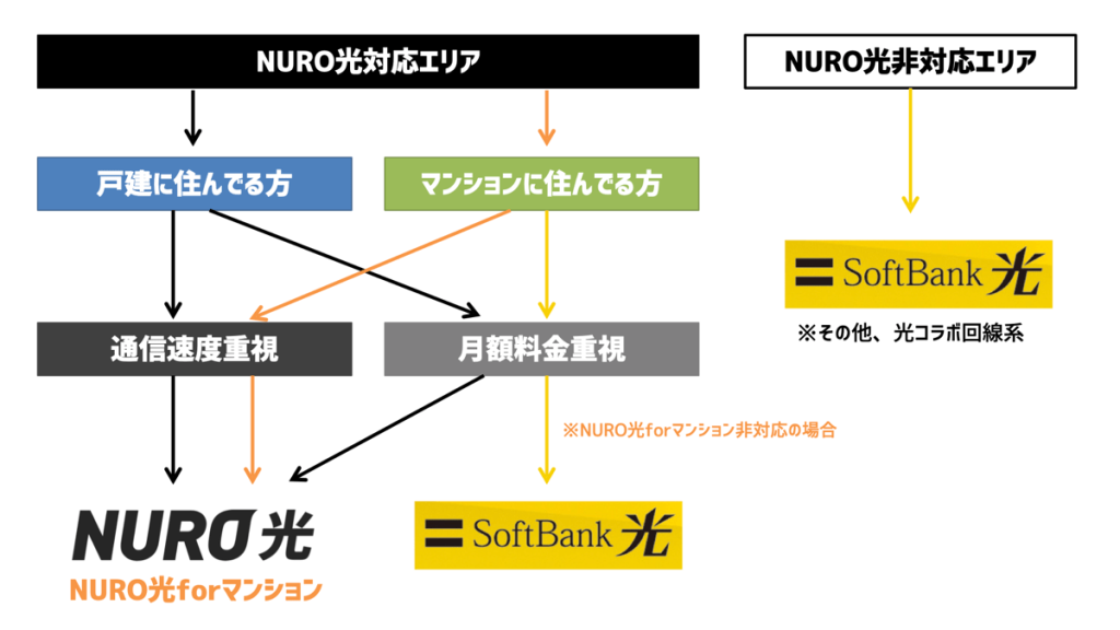 上記のケースに当てはまるならNURO光対応エリア内であってもソフトバンク光を選んだ方が良いです!