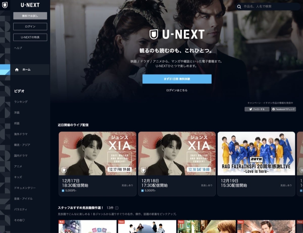 次にU-NEXTです。U-NEXTもNURO光に乗り換えることで、映画・ドラマ・アニメ・漫画を快適サクサクに視聴できるようになります。