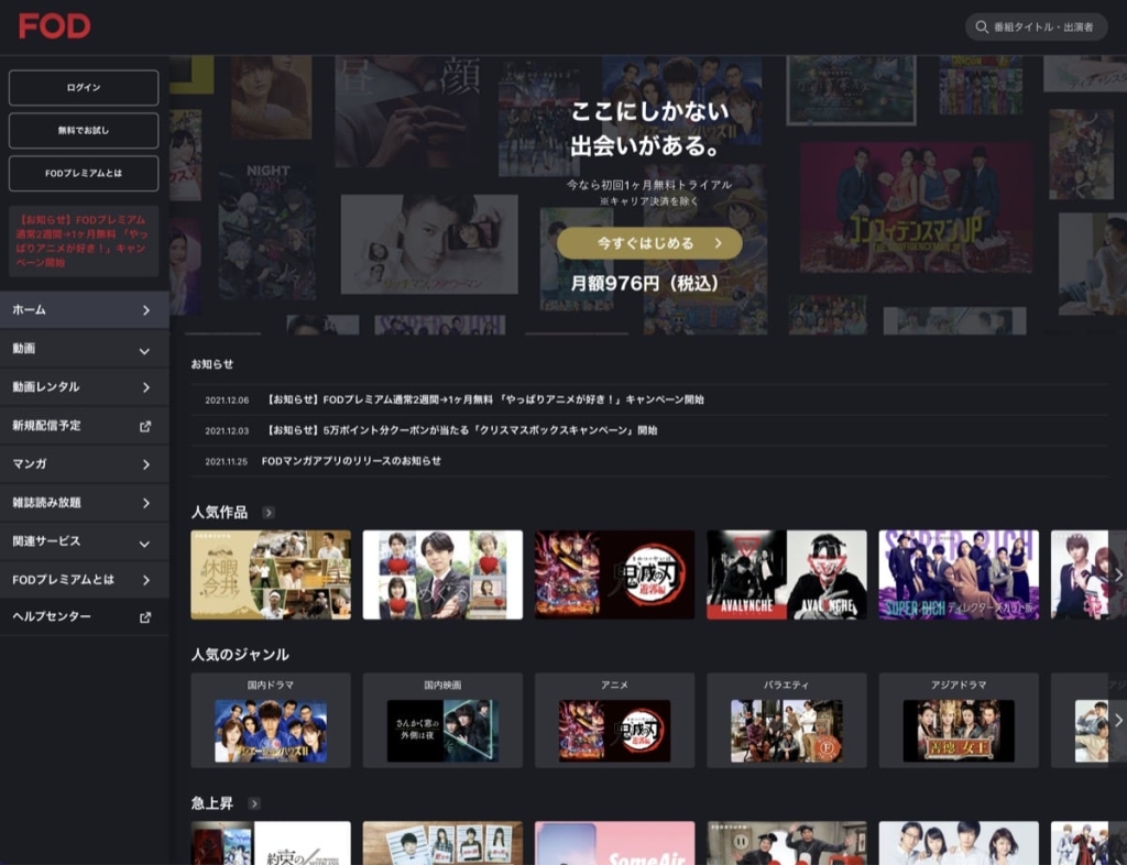 | FODプレミアム | 10Mbps以上 | 976円 |