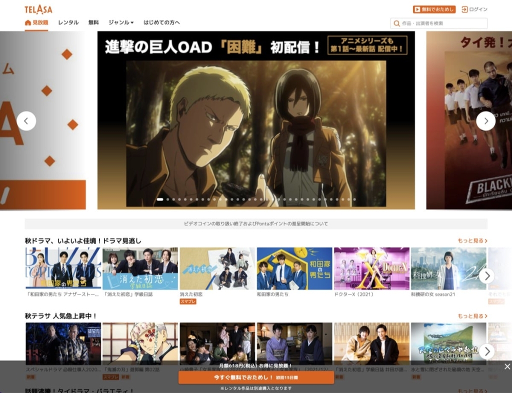 | TELASA | 一定以上の通信速度が必要 | 618円 |