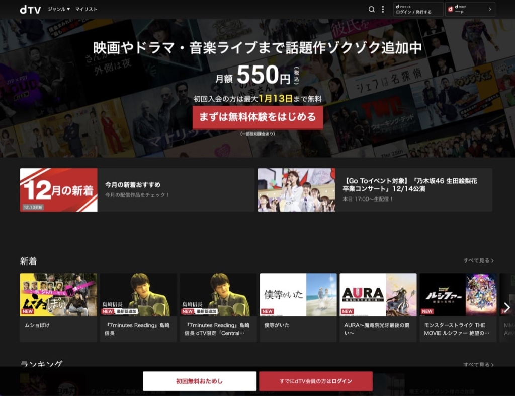 次にdTVです。dTVもNURO光に乗り換えることでdTVオリジナル番組やドラマ・映画をサクサク快適に視聴できるようになります。