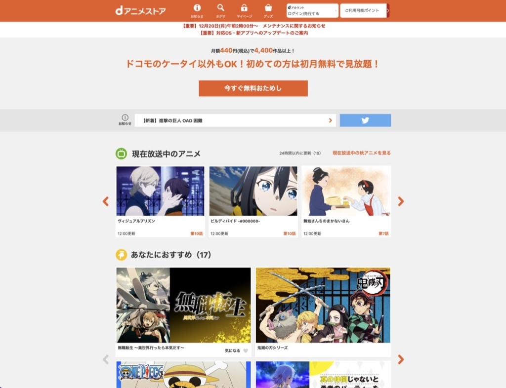 次にdアニメストアです。dアニメストアもNURO光に乗り換えることで4,400作品以上のアニメがサクサク快適に視聴できるようになります。
