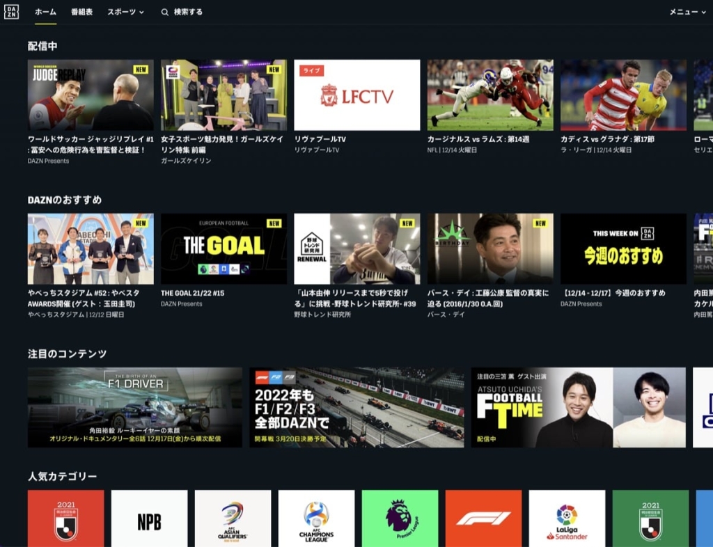 | DAZN | 標準画質 (720p):5.0Mbps 高画質 (1080p):9.0Mbps | 1,925円 |