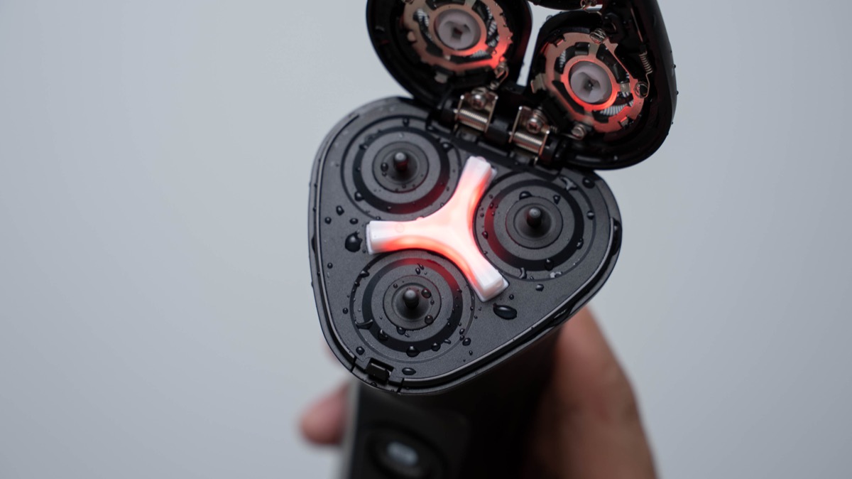 RFをONにすると赤くなり、肌を温めながら剃ることが可能です。